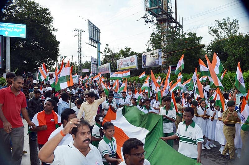 Peoples participating “Tiranga Yatra” in Hyderabad on Saturday. UNI PHOTO