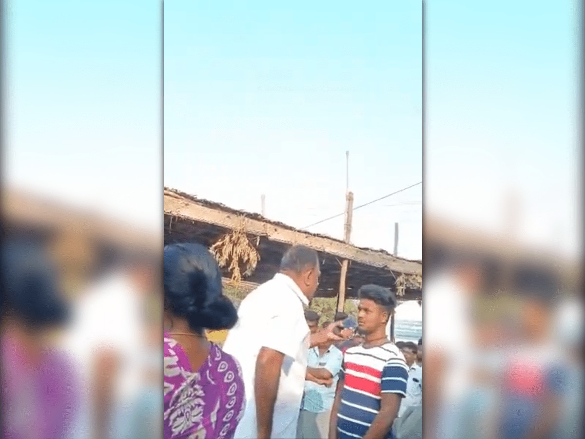 “How dare you enter the temple?” Manickam is seen asking the 23-year-old man, identified as Praveen Kumar, as the crowd gathers.