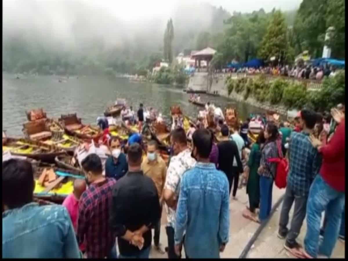 Nainital: After the Uttarakhand administration relaxed lockdown restrictions, a large number of tourists flocked to Nainital, where they could be seen flouting the covid-19 protocols like wearing masks and maintaining social distancing.