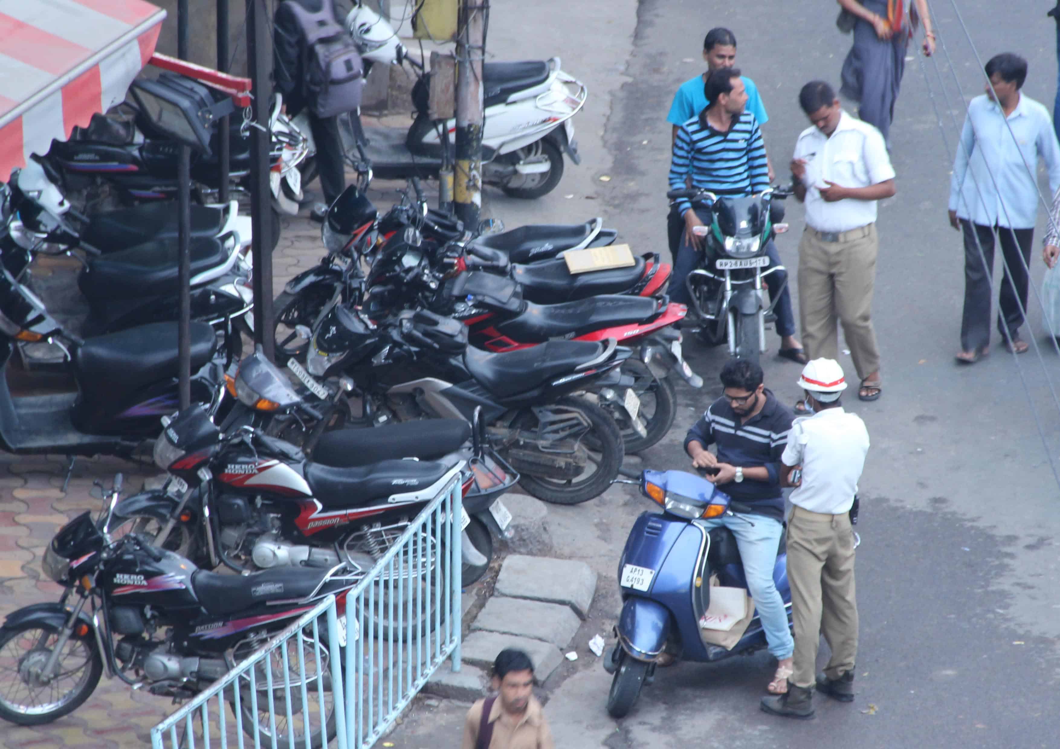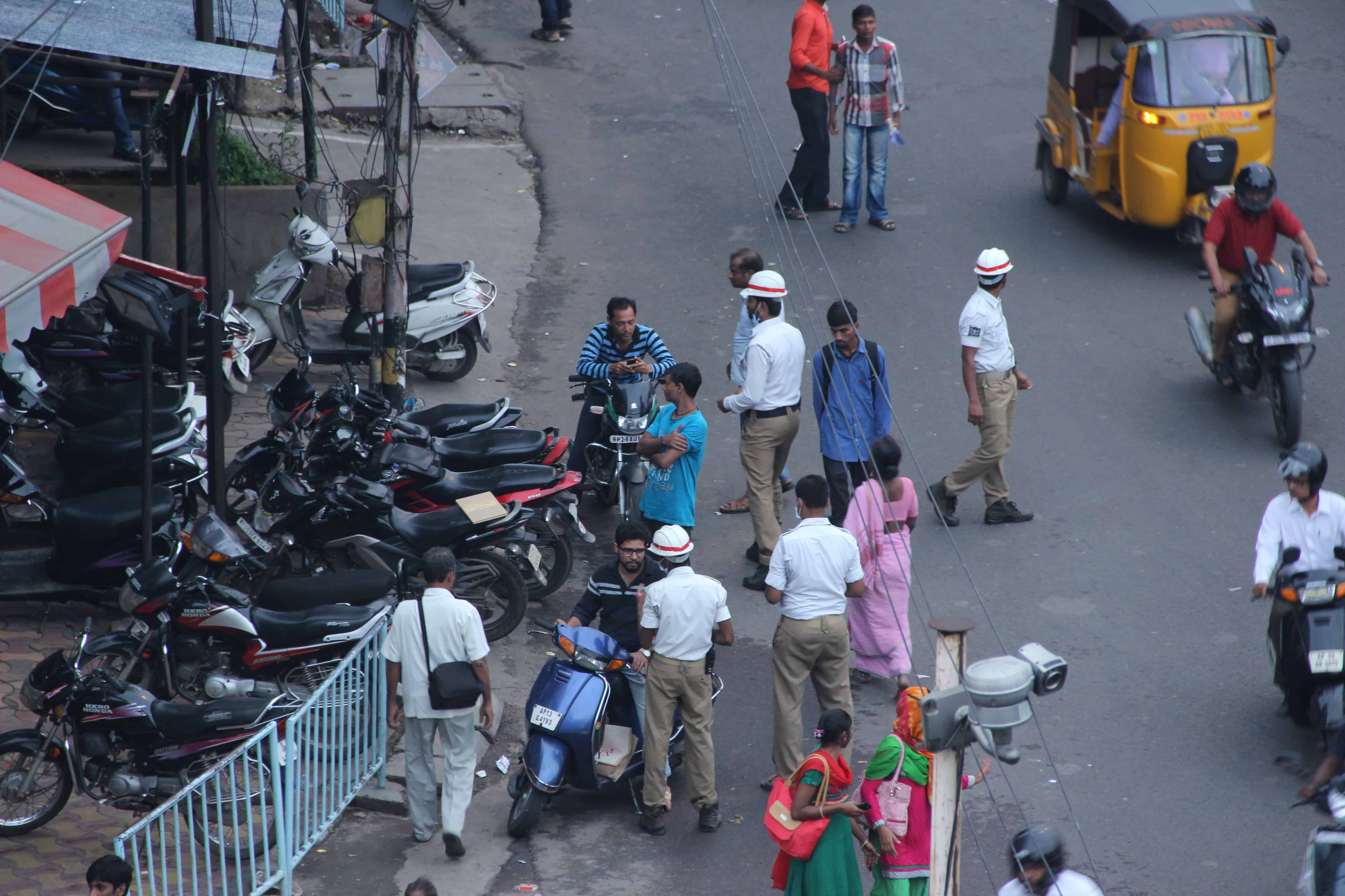 It seems that traffic cops are showing extra alertness and intercepting even those who are riding their vehicles with helmet on at Abids.Photo:Laeeq
