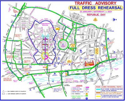 New Delhi, Jan 21 : In connection with the Republic Day celebrations, there will be a full dress rehearsal on January 23 (Saturday). The parade will start at 9.50 a.m. from Vijay Chowk and will proceed to the National Stadium. There will be elaborate traffic arrangements and restrictions in place for the smooth conduct of the parade, Delhi police said.