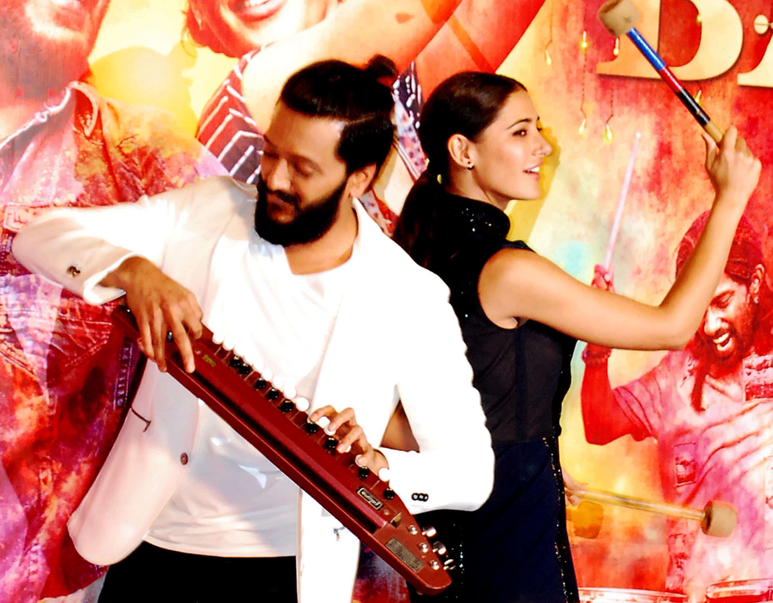MUMBAI, AUG 9 (UNI):- Bollywood actors Nargis Fakhri (R) and Riteish Deshmukh during the trailer launching of their up coming movie Banjo, in Mumbai on Tuesday.UNI PHOTO-130U