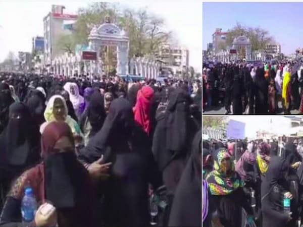 Lucknow: Thousands of burqa-clad Muslim women gathered on the ground of Teele Wali Masjid, Lucknow to participate in a protest march against Triple Talaq Bill.
