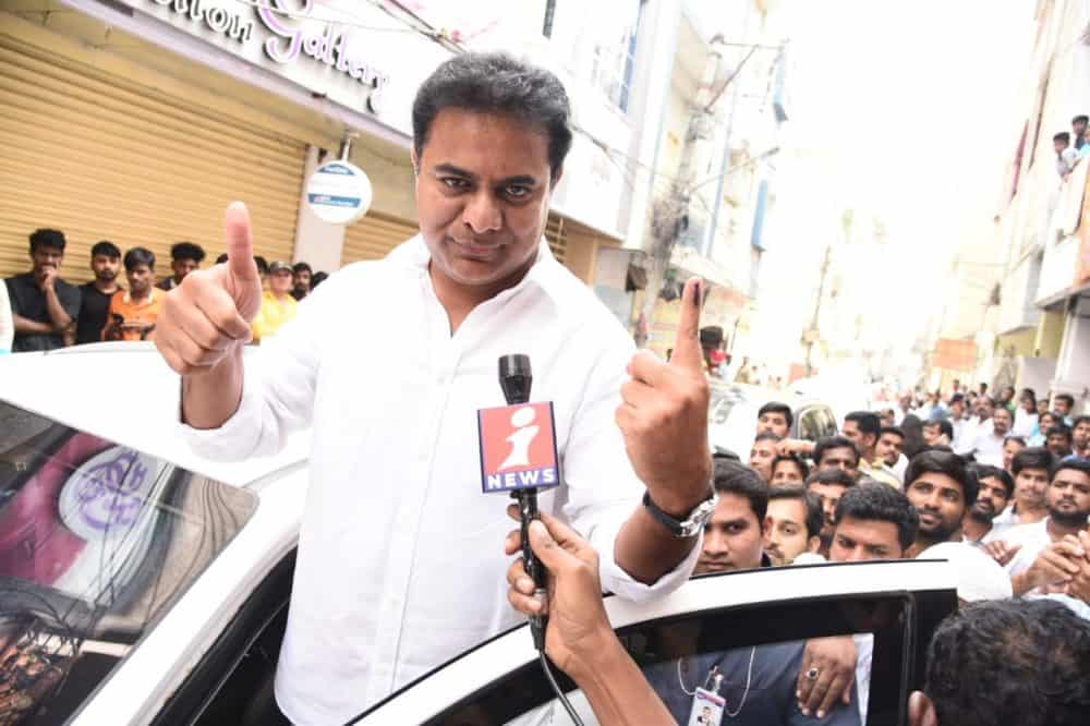 Meanwhile, Mr. K. T. Rama Rao also cast his vote. (Photo: Laeeq)