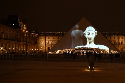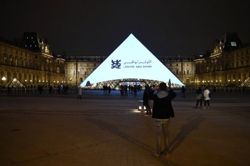 Images are projected onto the Louvre Pyramid in Paris at night on November 8, 2017 to mark the opening of the Louvre Abu Dhabi Museum on Saadiyat island in the Emirati capital.AFP