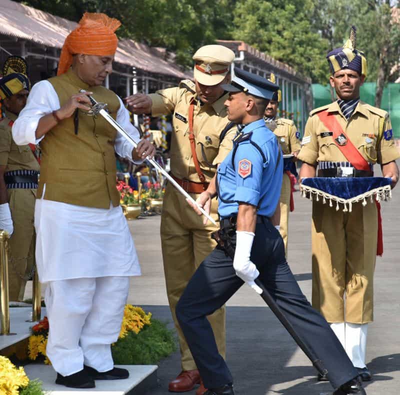 Shri.Rajesh Raj Puri (NPS) receiving The IPS Association s sword of honour for the best outdoor probationer from Union Home Minister Rajnath Singh at the Sardar Vallabhbhai Patel National Police Academy (SVP NPA) in Hyderabad on Monday.