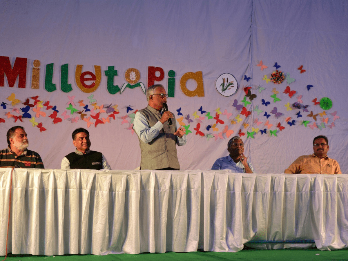 He expressed his happiness in seeing 800+ school children on the campus who came to participate in the event related to millets. These students will serve as the ambassadors for millets, he noted. He also emphasized that the students should try having millet-based meals at home, and finally, he congratulated the winners.