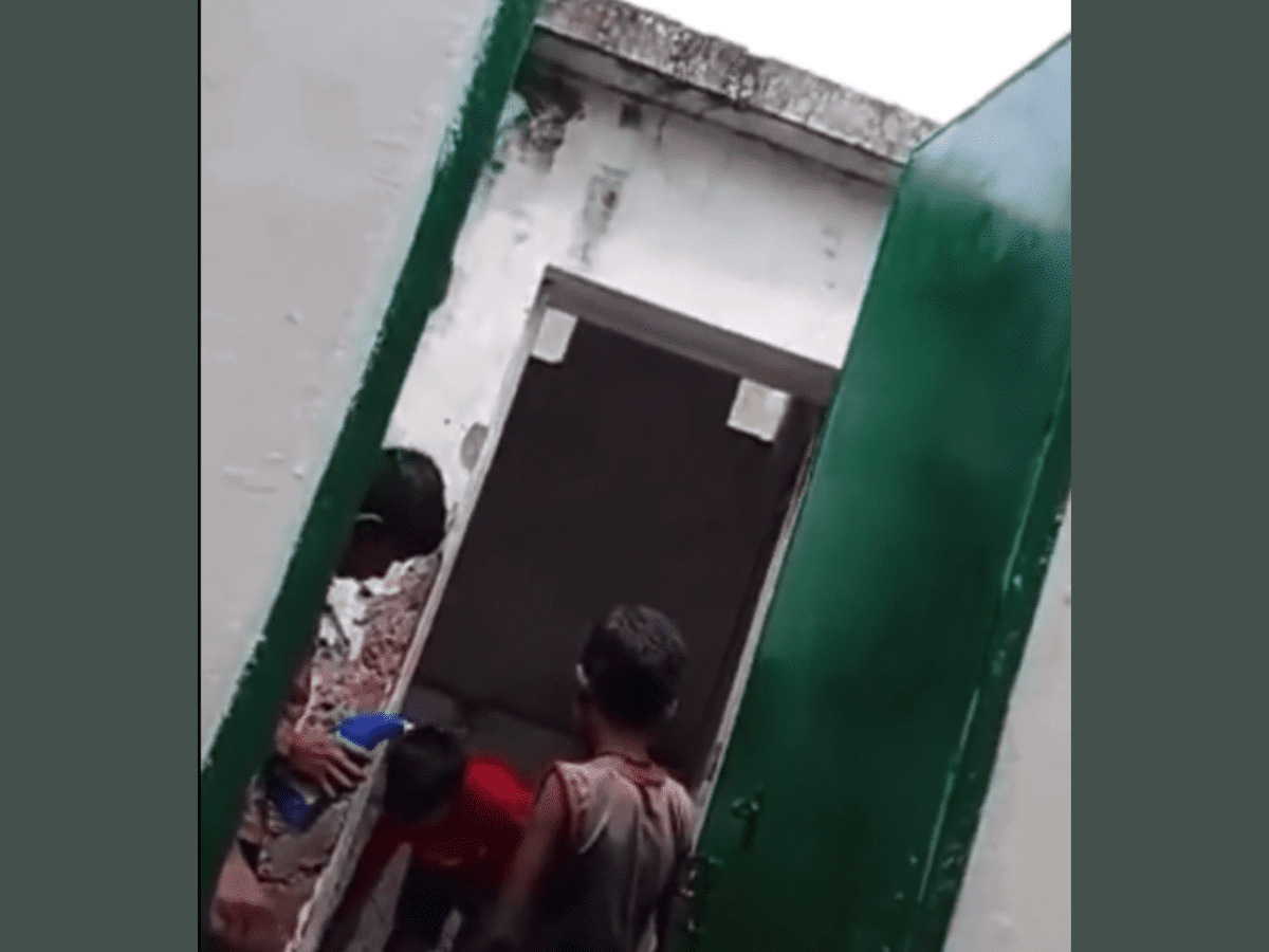 In the clip, children are seen cleaning a toilet, while a man is seen scolding them. The man also threatened to lock the toilet if the students did not do as asked.