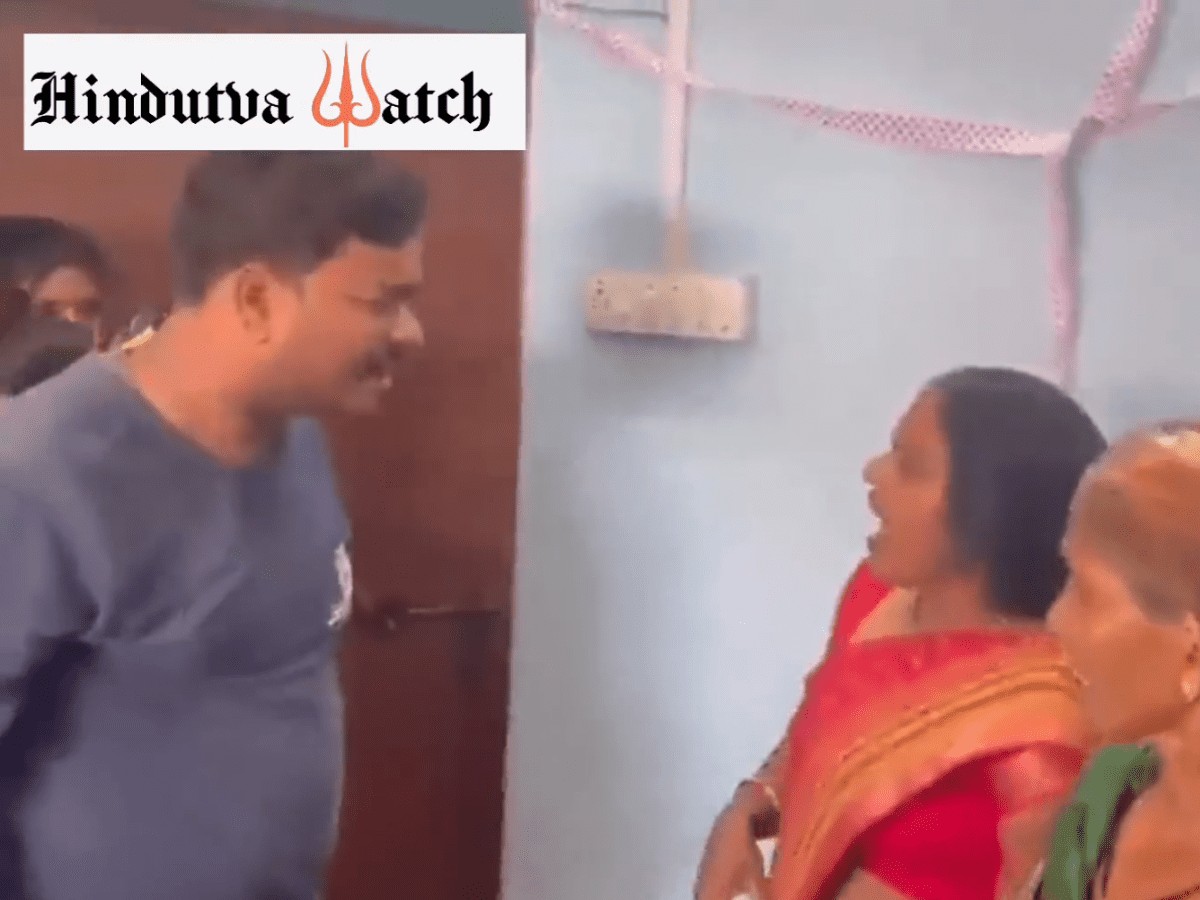 In the viral video which is making rounds on social media platforms, one Hindutva worker can be seen arguing with a purported Christian lady inside the house where other women were also present. The lady can be seen resisting and pushing the man back.