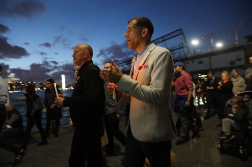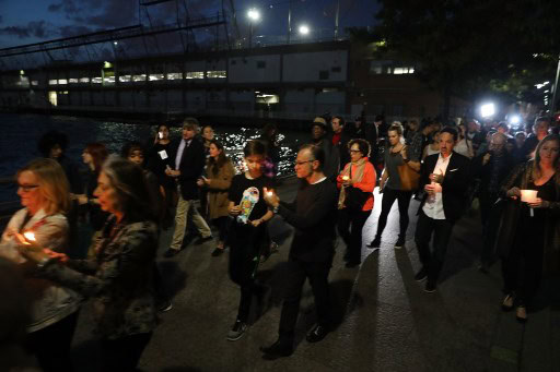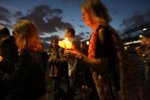 New York November 03: People converge with candles for a vigil to walk along a bike path in Lower Manhattan on November 2, 2017 in New York City. Eight people were killed and 12 were injured on Tuesday afternoon on Ocrtober 31st. AFP