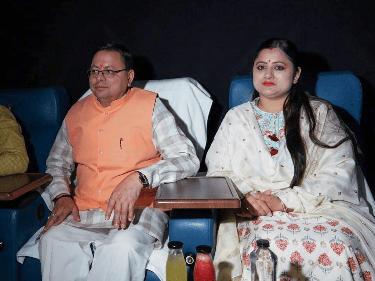 Dhami was accompanied by his wife Geeta, cabinet colleagues Premchand Aggarwal and Ganesh Joshi, Dehradun mayor Sunil Uniyal Gama, BJP MLA Durgeshwar Lal, BJP Mahila Morcha president Asha Nautiyal and party leader Ajeya Kumar for the movie screening at a city mall.