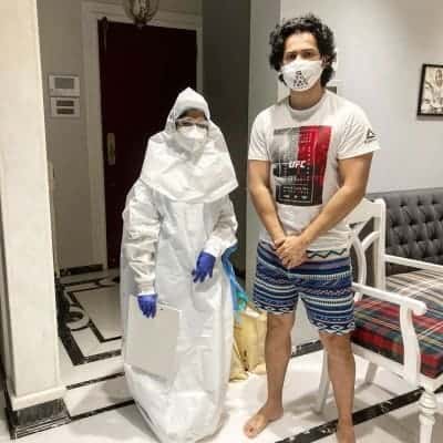 Varun posted a picture along with a medical personnel dressed in a PPE suit, face mask and eye gear. He then shared a video that shows his nasal swabs being collected.