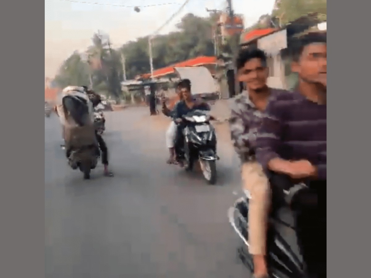 On Sunday, a group of youngsters were spotted driving scooters and motorcycles at high speed and performing dangerous stunts like wheeling.