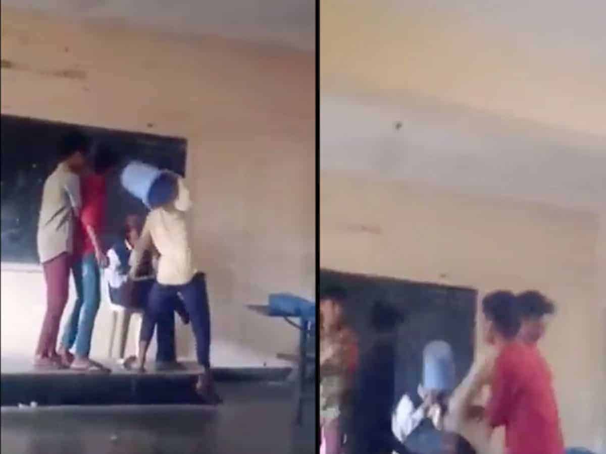 The viral video is of High School Nallur in Channagiri taluk of Davanagere district. The video shows the students reportedly misbehaving with one Hindi teacher when he entered the classroom. One of the students tried to assault him with a dustbin. Later, he puts it on the head of the teacher when he started teaching in the class.