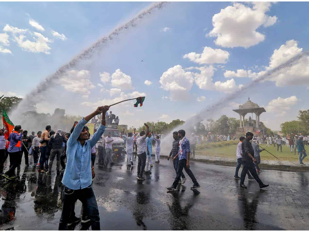 Jaipur: Police used a water cannon near the state secretariat to disperse BJP workers protesting over “corruption” and exam paper leaks under the Congress government in the state.