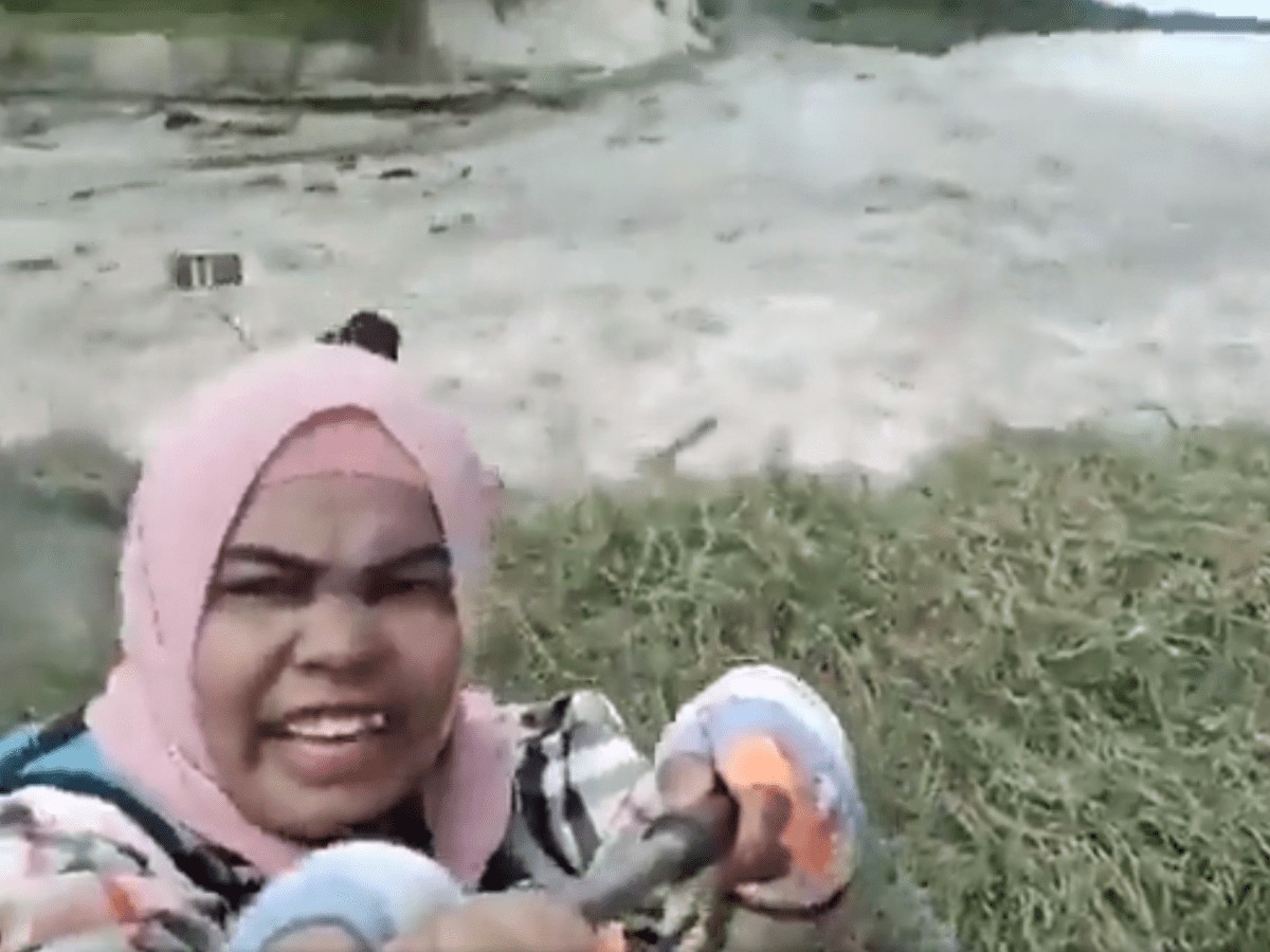 In the video, the woman can be seen fully excited about showing her viewers the situation around the raging flood water. But soon after that, the situation escalates badly for her. A big wave of water followed by debris hit her to the point of her getting struck beneath it.