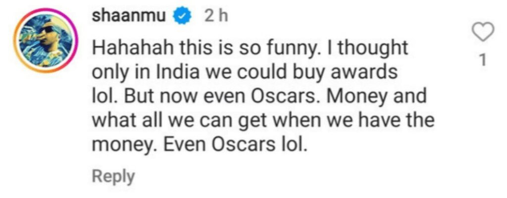 The lead actors along with the RRR team are enjoying the success of the film currently but Jacqueline Fernandez’s makeup artist Shaan Muttathil claims that the RRR team bought the Oscar award with money. He took to the comments section of an Instagram post about Naatu Naatu bagging an Academy Award and wrote, “Hahahah this is so funny. I thought only in India we could buy awards lol. But now even the Oscars. Money and what all we can get when we have the money. Even Oscars lol.”