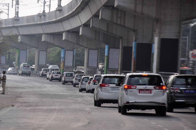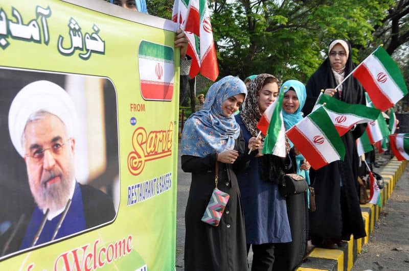 Citizens of Iran living in Hyderabad assemble near Begumpet Airport to welcome President of Iran Dr. Hassan Rouhani who arrived Hyderabad Today.
