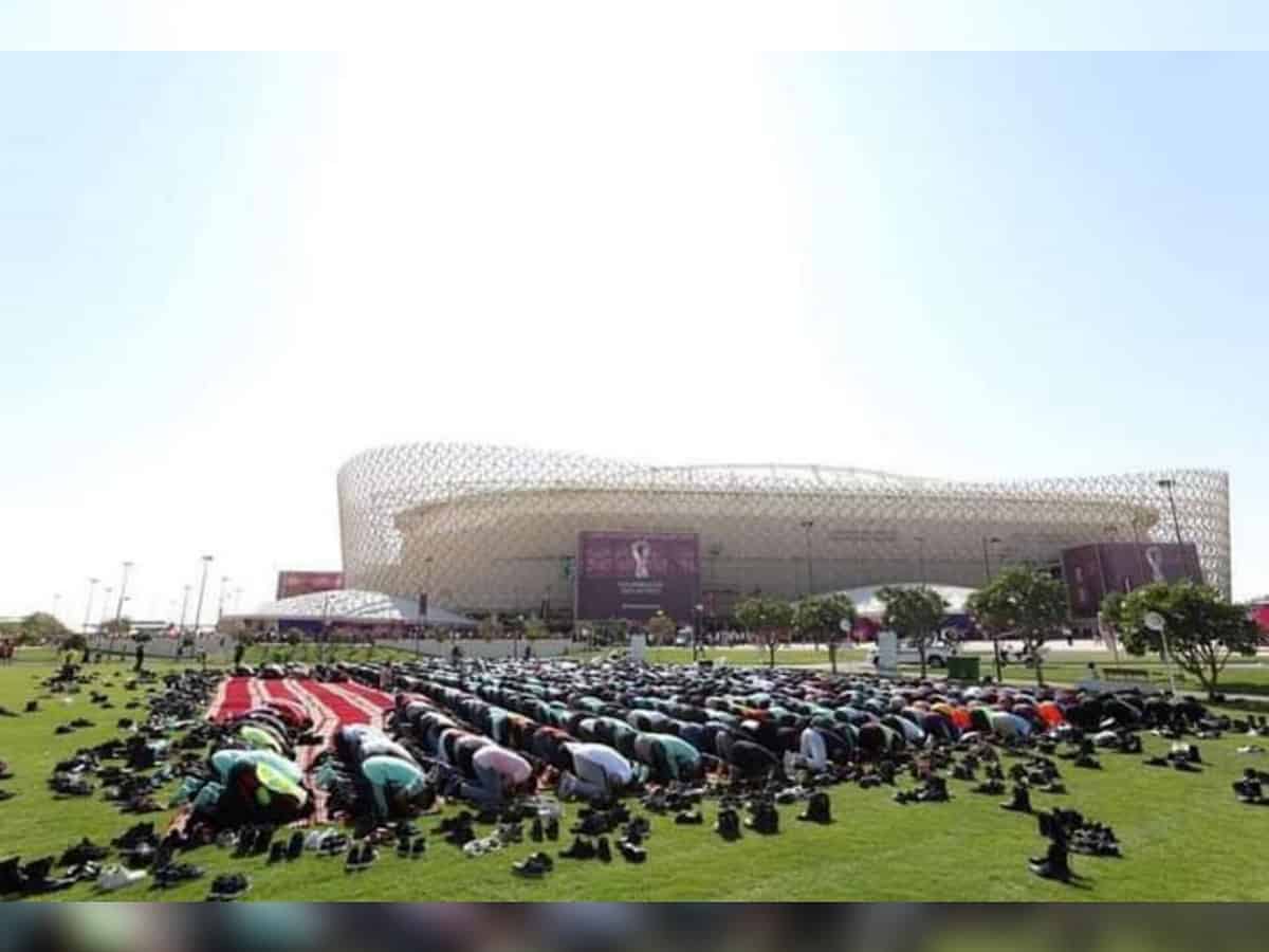 Doha: For the first of its kind in history, hundreds of fans, players, and officials at the World Cup 2022 in Qatar performed Friday prayers in the vicinity of Ahmed bin Ali Stadium and Al-Thamma Stadium.