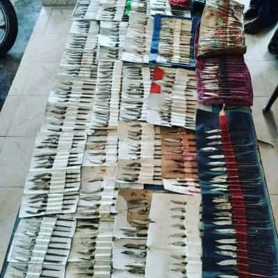 Eluru, Jan 9 : Andhra Pradesh’s West Godavari district police have seized 482 knives, used for tying them to the feet of cocks during cockfights, as part of their crackdown on illegal activities in Sankranti on Saturday.