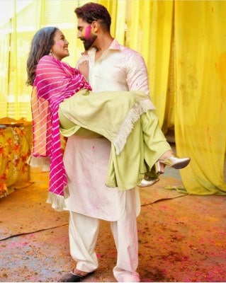Taking to Instagram, Neha posted a picture in which Parmish is seen lifting her.