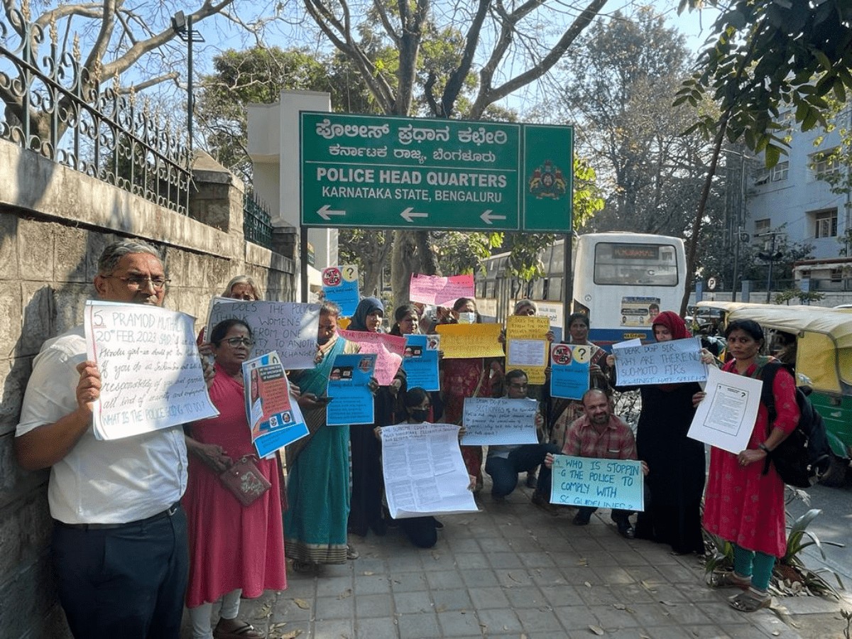 Two days after Hindutva leader and head of the Sri Ram Sena Pramod Muthalik declared to “provide security and employment to young Hindu men who trap Muslim women and ruin their lives”, Bangaloreans gathered outside the office of Director General of Police (DGP) Praveen Sood protesting against Muthalik. The concerned citizens asked why no action is taken against hate speeches.