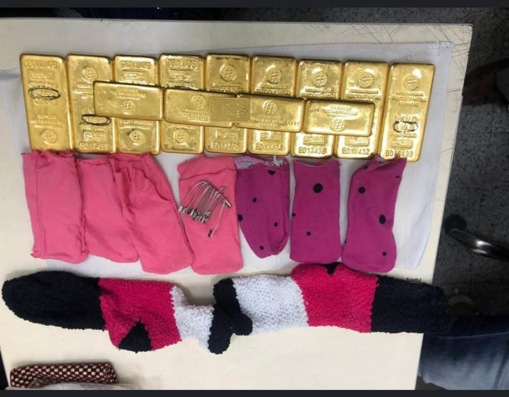 She had arrived at Shamshabad International Airport through Emirates flight travelling business class from Dubai. She was stopped at the exit gate around 3-00 am. The investigating officers found that the foreign-marked gold was concealed in specially made cloth pockets and socks along with foreign currency worth Rs 4.25 lakh. The foreign currency was in the form of Singapore dollars and UAE dirhams.