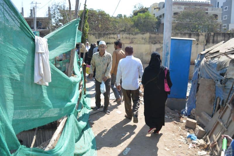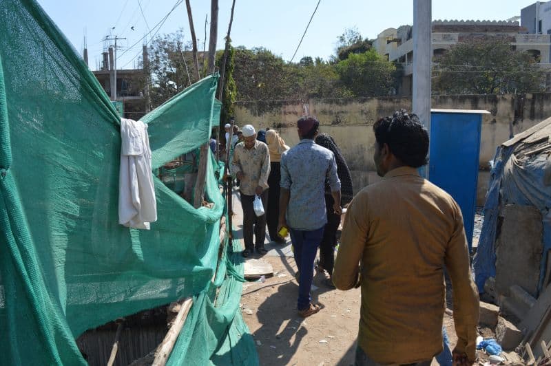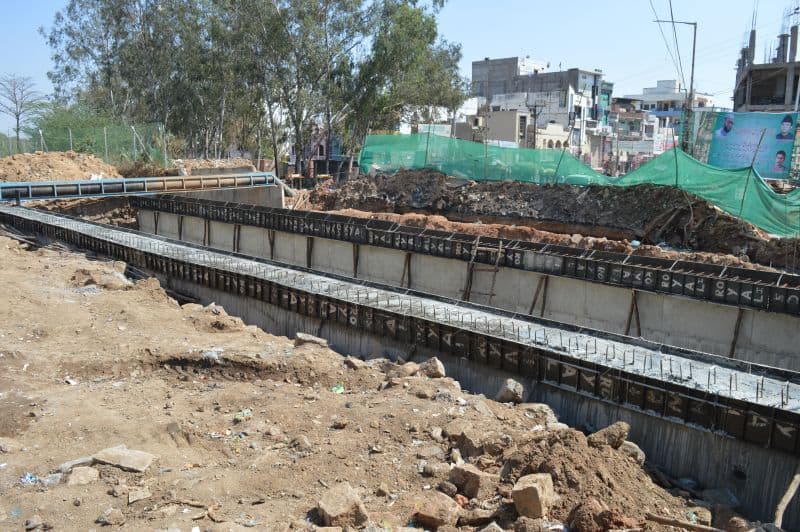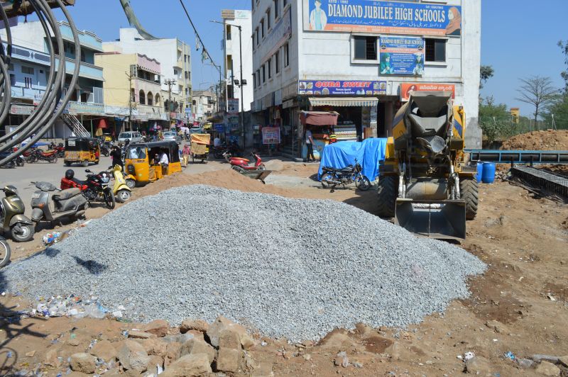 The construction work of flyover/footover bridge is stopped since a very long timecreating havoc pedestrians and the traders as well in tolichowki, hakimpet road (Pics: Murli)