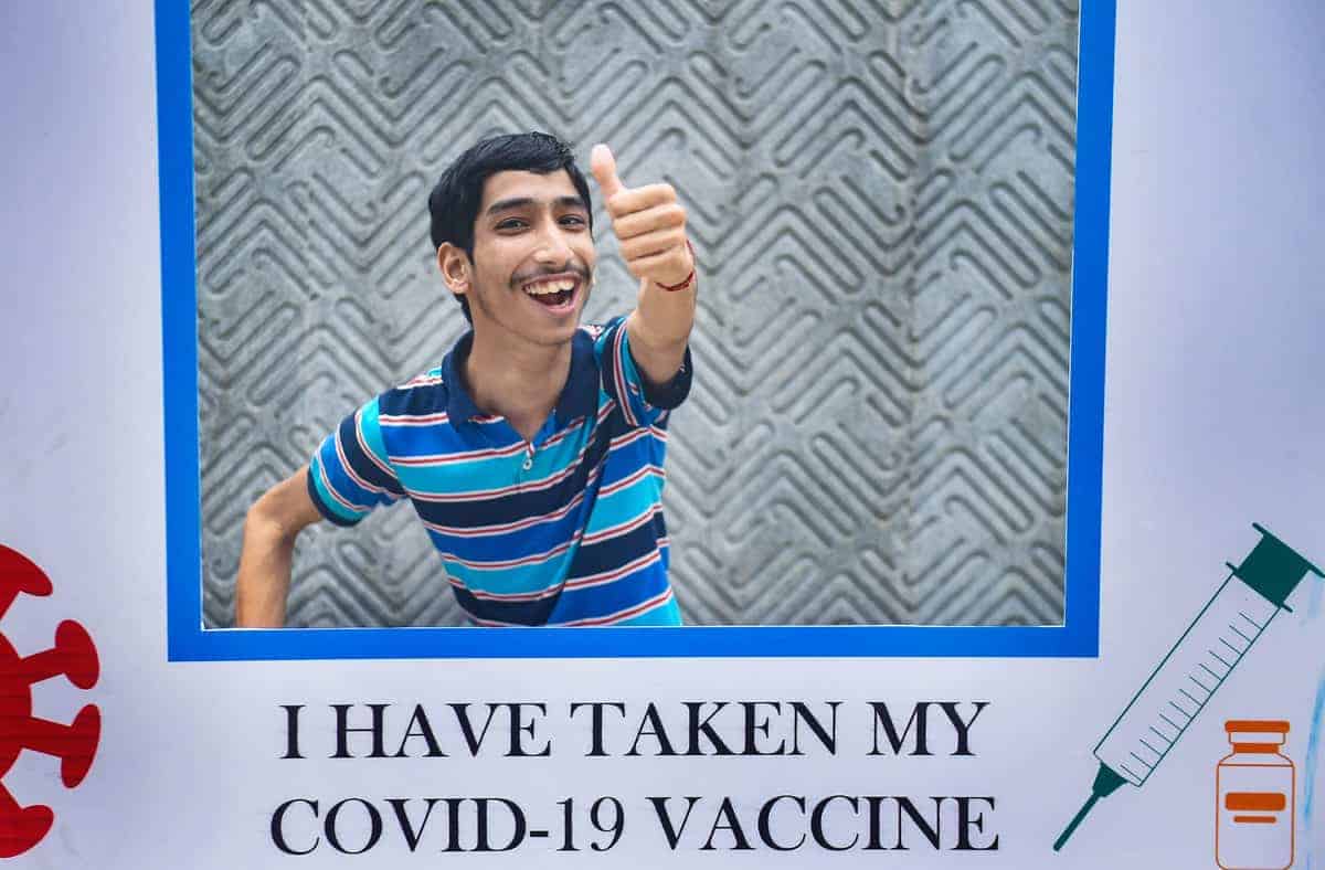 Bengaluru: Students stand in queue to receive COVID-19 vaccine doses during a special vaccination drive organised by the Karnataka government for the students, who are going abroad for education and employment, in Bengaluru, Wednesday, June 2, 2021. (PTI Photo/Shailendra Bhojak) (PTI06_02_2021_000119B)