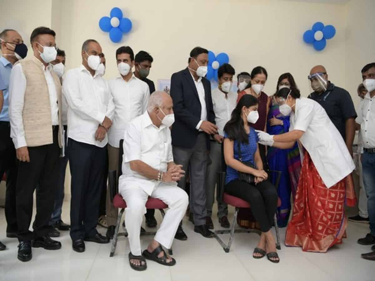 Bengaluru: Karnataka Chief Minister BS Yediyurappa on Saturday inaugurated the vaccination drive for people above 18 years of age at Bowring and Lady Curzon Hospital in Bengaluru.