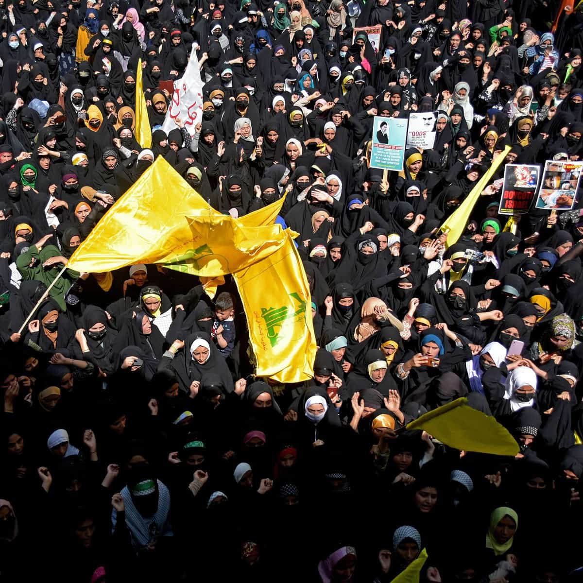 The protesters were seen carrying placards and banners that read “Free Palestine,” “Pray for the Children of Gaza,” “Down with Israel and the US,” etc.